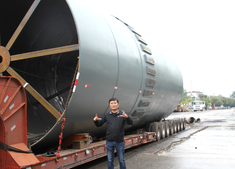 大家好我是鄭千里,是環球重工日常發貨記錄者,今天要裝運的是一臺大型水泥線回轉窯,因為窯體太長(68米),走陸運不安全,公司決定將窯體分為三段進行發貨。